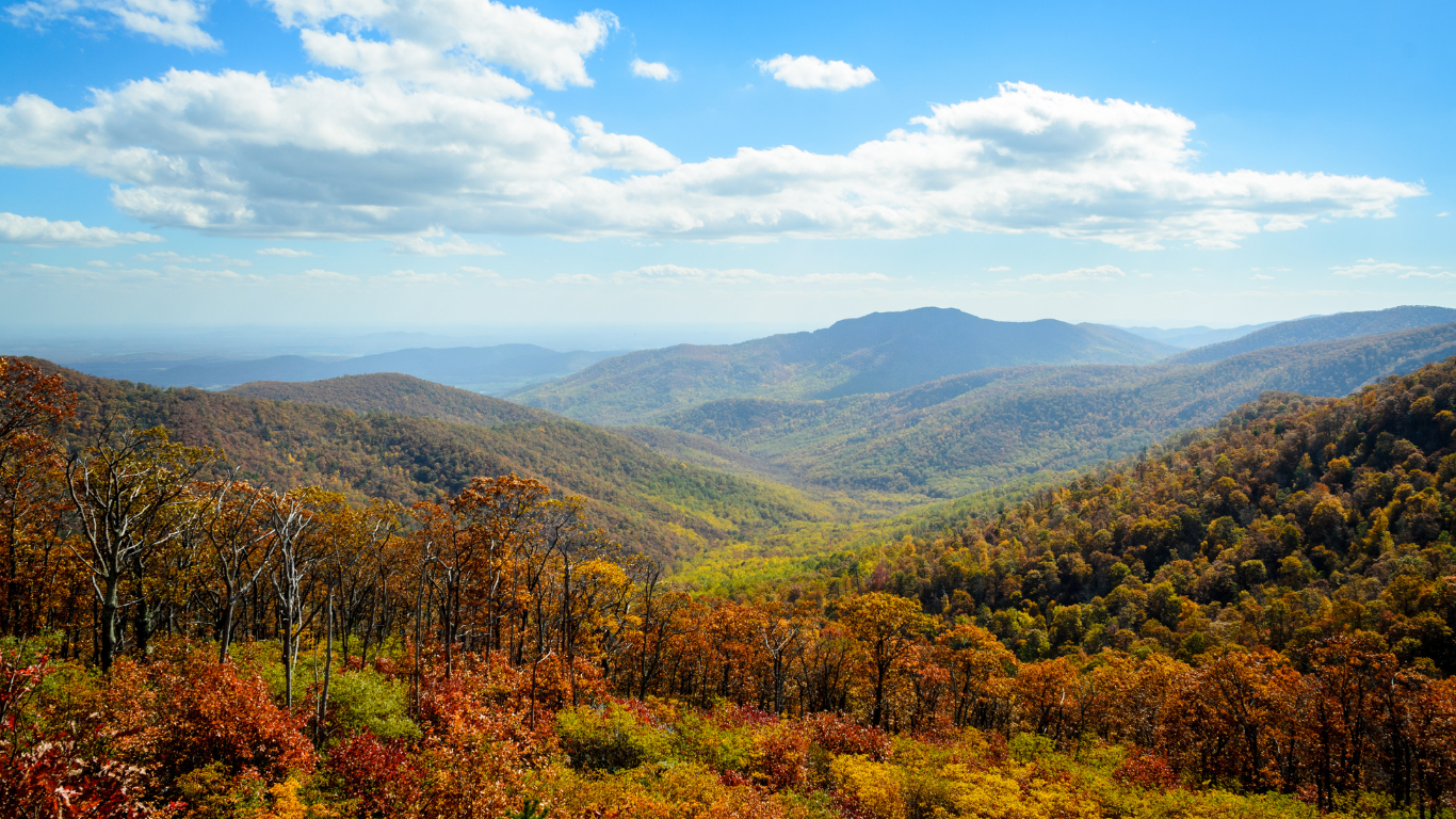 Shenandoah National Park (Virginia): nổi tiếng với Skyline Drive – con đường tuyệt đẹp men theo sườn núi.