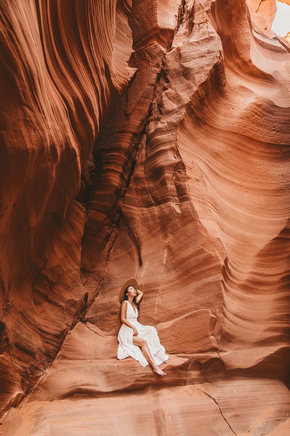 Hẻm linh dương được xem là một trong những địa điểm check-in đẹp nhất trong hành trình tour bờ tây Mỹ vì gần như mọi góc đều có thể tạo nên bức ảnh ấn tượng. Du khách có thể chụp tại khu vực xuất hiện tia sáng xuyên thẳng từ trên xuống, góc đường cong chữ S nổi tiếng, hoặc chụp từ dưới nhìn lên để lấy trọn chiều cao của vách đá.